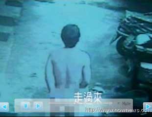 據(jù)臺灣東森新聞報道,監(jiān)視錄像帶中左上角這名男子全身光溜溜,從小吃店跑到大街上,左手遮著重要部位,右手往后遮屁股,見到有放學(xué)的學(xué)生經(jīng)過還會害羞的跑到車子后方躲起來,光天化日之下在大街上上演裸奔戲碼,他不是和朋友玩游戲玩輸被懲罰,而是因為沒錢付酒錢。