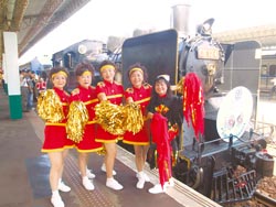為了增添臺(tái)鐵光彩,包括彰化縣婦女防火倡導(dǎo)拉拉隊(duì)及土風(fēng)舞表演團(tuán)體,昨天都到火車(chē)站的月臺(tái)演出,博得游客們的熱情掌聲。
