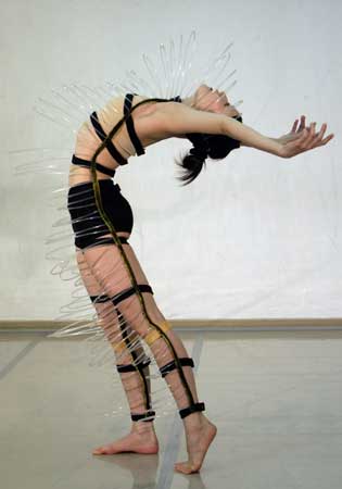 云門舞集2“2008春斗鳥之歌”三月二十六日起將在新舞臺一連演出五場,這是云門火災(zāi)后第一檔公演。圖為二月二十五日云門舞者表演編舞家黃翊新創(chuàng)作的“身·音”。(“中央社”圖;張皓安攝)