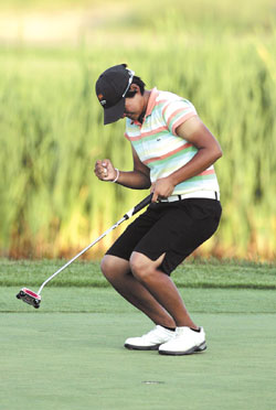 曾雅妮在LPGA錦標賽延長驟死賽擊敗對手霍斯奪得冠軍,神情相當(dāng)興奮。(圖:臺灣《中國時報》)