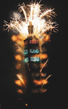 盛名遠(yuǎn)播的一○一大樓跨年煙火秀。