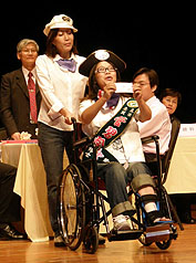 中新網(wǎng)12月19日電 高雄市第七屆“立委”參選人今天(19日)進(jìn)行號(hào)次抽簽,參選人莫不花招百出,其中民進(jìn)黨“立委”管碧玲坐著輪椅負(fù)傷前往抽簽且一身海洋船長裝扮。她并自我解嘲說“獨(dú)一無二、無以輪比”,頗有創(chuàng)意。