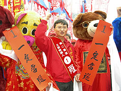 抽簽會(huì)場外藍(lán)綠陣營積極動(dòng)員造勢,現(xiàn)場“凍蒜!(注:當(dāng)選)”聲此起彼落,場面熱烈,在警方以人墻區(qū)隔藍(lán)綠陣營下,過程平和。