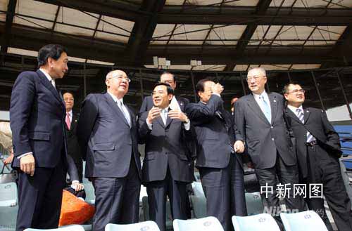 吳伯雄一行參觀北京奧運(yùn)場館五棵松棒球場(圖)