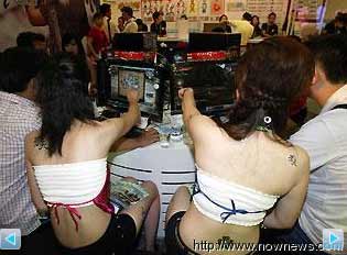 中新網(wǎng)8月1日電 一年一度的臺北計算機應(yīng)用展31日登場,游戲廠商拼買氣,大手筆請來眾多超級辣妹女子兵團。其中,有游戲的Show Girl把刺青貼紙貼在白嫩嫩的大腿上、有肚兜妹妹一對一陪伴民眾打電動,美艷撩人的“伴玩”表現(xiàn),讓男性民眾大呼:“真害羞!”
