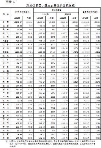 附表1:耕地保有量、基本農(nóng)田保護(hù)面積指標(biāo)