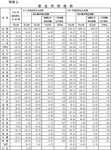 附表2:建設(shè)用地指標(biāo)
