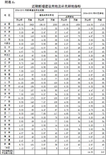 附表6:近期新增建設(shè)用地及補充耕地指標(biāo)
