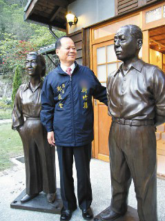 新竹縣長鄭永金望著少帥銅像,內心無限感動,一旁為趙一荻銅像