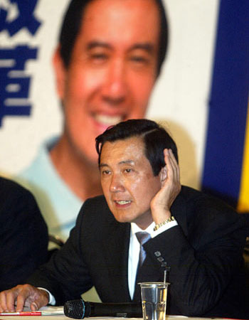 圖為馬英九當(dāng)選后舉行國際記者會,用心聆聽在場記者提問。