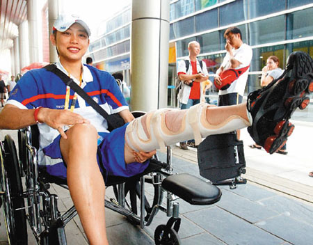 負(fù)傷參賽的奧運(yùn)跆拳女將蘇麗文,抽空前往跆拳道場地觀戰(zhàn)。