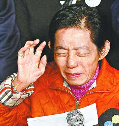 2月10日,臺北地方法院再次傳喚陳水扁之妻吳淑珍到庭應訊,繼續(xù)審理前臺灣地區(qū)領導人陳水扁家所涉弊案。吳淑珍在連續(xù)17次拒不出庭后,當日終于現(xiàn)身,并在兩個半小時的庭訊結(jié)束后,發(fā)表簡短“道歉聲明”,表示今后將“隨傳隨到”。圖為吳淑珍庭訊結(jié)束后離開臺北市地方法院時,媒體圍追。 中新社發(fā) 路梅 攝