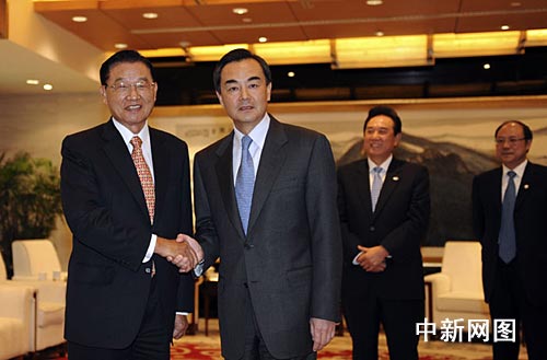 中新網(wǎng)南京4月26日電 (記者 劉舒凌)中共中央臺(tái)辦主任王毅今天下午5時(shí)許在南京會(huì)見;鶗(huì)董事長江丙坤率領(lǐng)的協(xié)商代表團(tuán)一行。
