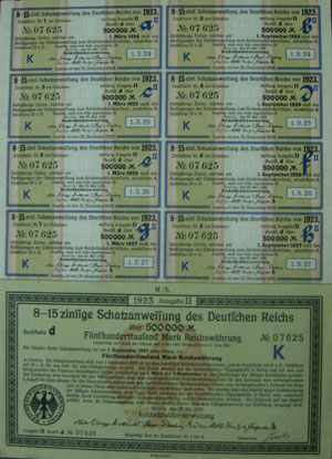 臺(tái)北市的蘇文朗,當(dāng)年祖父是士林紙廠的干部,他五歲時(shí),曾看過(guò)祖父拿出兩張鈔票大小的“彩色紙片”用來(lái)包煙草。當(dāng)時(shí)他好奇地纏著祖父問(wèn),這些“圖畫(huà)紙”是哪里來(lái)的。祖父抽了一口煙,緩緩地說(shuō):“這不是圖畫(huà)紙,是外國(guó)錢(qián)!痹瓉(lái)祖父當(dāng)年奉命要以馬克債券作為紙廠員工工資,但心軟的祖父預(yù)感這些“外國(guó)錢(qián)”兌換無(wú)門(mén),因此家境富裕的他,干脆自掏腰包發(fā)薪水,而這些馬克債券就成了祖父嘴邊的彩色煙卷。