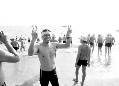 轉(zhuǎn)眼間,時間過去了半個多小時,主辦方規(guī)定的結(jié)束時間到了,還有不少人舍不得上岸,只好讓救生艇出動去清場。岸上的觀眾則熱情地等待著最后一名游泳者上岸,并報以熱烈的掌聲。(記者 葉秀月/文 吳曉平/圖)