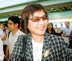 云林縣長(zhǎng)蘇治芬搭乘兩岸包機(jī)抵達(dá)北京,第一次踏上大陸。(“中央社”圖)