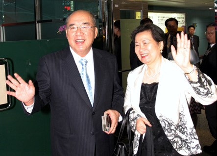 中新網(wǎng)8月7日電 中國國民黨主席吳伯雄夫婦今天上午搭機經(jīng)由香港前往北京,將出席明天的北京奧運開幕式。他說,全球幾十億人都關(guān)注的奧運,臺灣不能缺席,也希望臺灣選手能夠奪牌揚威。