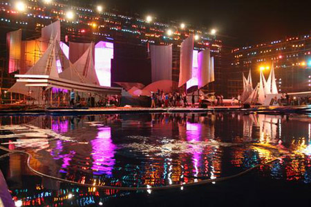 國(guó)際先驅(qū)導(dǎo)報(bào)見(jiàn)習(xí)記者鄧媛發(fā)自北京 一邊是“驚濤拍岸,卷起千堆雪”的榮成海上舞臺(tái),一邊是金碧輝煌、雍容典雅的臺(tái)北中式建筑。9月14日晚,這兩處別樣的景致在中央電視臺(tái)2008年中秋晚會(huì)的直播現(xiàn)場(chǎng)完美地融合在了一起。