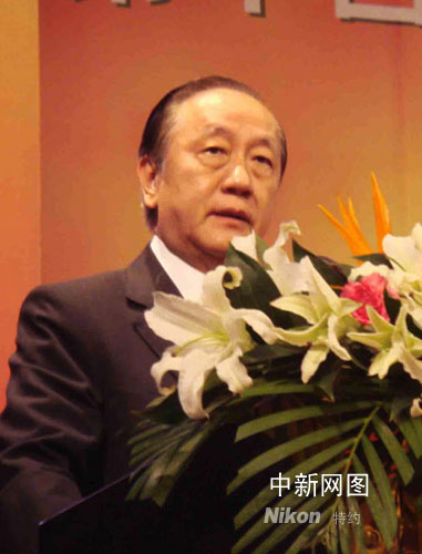 臺灣新黨主席郁慕明在魯臺會開幕式上致辭。 作者:張璐