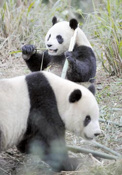 專心啃竹子 不知專機(jī)來(lái)迎親
