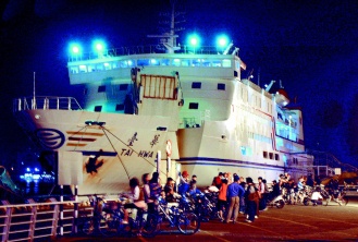 臺(tái)華輪船齡十八年,排水八千噸,可搭載一千一百余人,最大航速二十二節(jié),高雄到馬公航程四個(gè)多小時(shí),從馬公到廈門要六點(diǎn)五小時(shí)至七小時(shí)。
