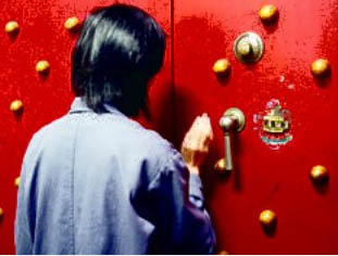 要開紅門,“故宮”人員至少三人同行,即使貴為院長都沒有鑰匙,也無法單獨擅入,鑰匙平時鎖在行政大樓地下的器物處辦公室,由科長保管,凡進出山洞,都必須向科長報備批準,并先行知會安全室!耙欢ㄒ獌扇艘陨吓阃^不可能單獨入內!薄肮蕦m”院長林曼麗說。