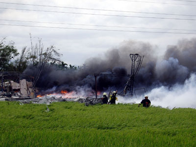 中新網(wǎng)11月2日電 臺灣苗栗縣后龍鎮(zhèn)豐富里一家地下爆竹工廠,今天上午發(fā)生爆炸引發(fā)大火,整個廠房夷為平地,目前已造成兩人死亡六人受傷。