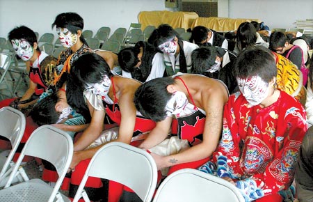 警方表示,這七十九人中有四十六人未成年,分別來自彰化、南投、臺中縣市,多半是中途輟學生,年紀最小的只有小學六年級。他們被帶回警局驗尿時,有的身上還穿著表演服裝,臉上畫著大花臉,并露出大面積的刺青。