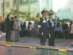 現(xiàn)場(chǎng)氣氛尷尬,因舞臺(tái)前主辦單位還安排了兩位真警察站崗,兩位警察見(jiàn)狀,一動(dòng)也不動(dòng)。記者問(wèn):“你看了覺(jué)得如何?”警察氣憤地說(shuō):“有很多人來(lái)問(wèn)我,但那些一看就知道是假的。”據(jù)悉,最后該活動(dòng)仍選出比基尼冠軍,巧的是,得獎(jiǎng)的女子又是脫掉比基尼用手遮住重點(diǎn)的舞者。