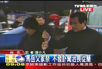 馬英九參加岳父遺體告別式 跪訴:讓妻受委屈(圖)