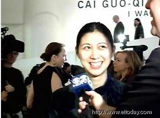 華人藝術(shù)家蔡國強在紐約古根漢博物館舉行個展,但展場中卻出現(xiàn)一大焦點,蔡國強身邊的英文翻譯正是馬英九的女兒馬唯中。