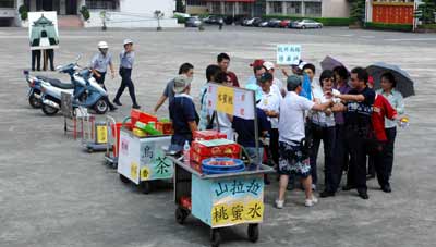 上午模擬演練的狀況,首先是風景區(qū)“鏢客”和大陸客買賣發(fā)生糾紛,警察據報到場依違反社會秩序維護法將攤販帶回偵辦;另一個狀況則是大陸觀光團在“中正紀念堂”遇上激進團體散發(fā)文宣,沖突一觸即發(fā),轄區(qū)警局緊急趕到現場布署,利用人墻隔開,讓大陸客安全搭上游覽車,同時驅離鬧事群眾化解危機,示范內容生動、逼真。