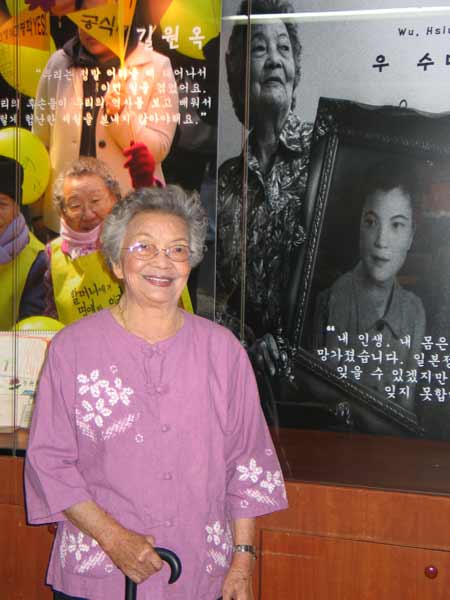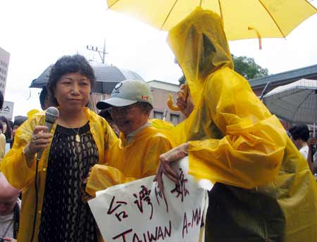 中新網(wǎng)7月16日電 曾被日本強(qiáng)迫征調(diào)為日軍慰安婦的臺(tái)灣阿嬤吳秀妹,今天由臺(tái)灣“婦女救援社會(huì)福利事業(yè)基金會(huì)”董事長葉毓蘭及董事陳淑麗等陪同,冒著大雨在首爾市日本大使館前高唱“雨夜花”,抗議日本軍國主義摧殘她的青春,并要求日本政府公開道歉及給予賠償。