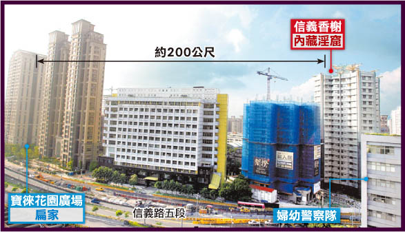 色情場所就在“信義香榭”豪宅內(nèi),僅距陳水扁住所“寶徠花園”200米