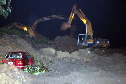 事發(fā)后,現(xiàn)場共動員二百名相關(guān)單位人員及五部重機械搶救,至當晚九時搜出四輛汽車(包括一輛廂型車、兩輛小客車、一輛小貨車)及一部摩托車。