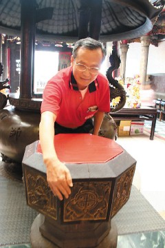 蘆竹鄉(xiāng)南崁五福宮的八卦天爐,相傳是古代匯集財氣的神物,最近景氣低迷、股市不振,八卦天爐的人氣比過去更旺。 (圖片來源:臺灣《聯(lián)合報》)