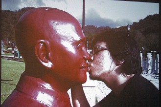 中新網(wǎng)10月27日電 臺灣交通大學一男子,到一處收集蔣介石銅像最多的公園,狂吻蔣介石銅像“足足6分鐘”,該男子還把這段過程拍成影片,在學校藝文空間展出,備受矚目。