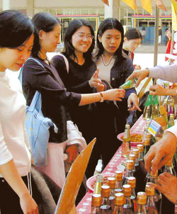 有男同學(xué)便起哄要跟賴某打賭,假如她有辦法一口氣喝光一整瓶高粱酒,就贏六百元新臺(tái)幣的獎(jiǎng)金;極有酒膽的賴某也不遲疑,直接仰頭喝酒,男同學(xué)鼓掌叫好。