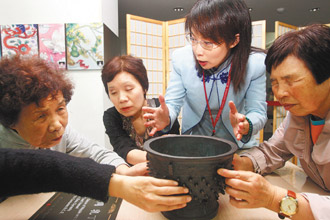 “能夠摸到兩、三千年前的文物,真是不虛此行。”來自長(zhǎng)崎福岡市的笠律子特別鐘愛乳丁簋,由于食器外觀有許多突起物,造型令她印象深刻。