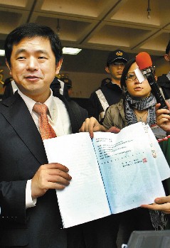 據(jù)臺灣《聯(lián)合晚報》報道,臺“法務部”要求查辦鄭文龍多次代扁傳話是否違法,鄭文龍今天上午證實昨晚已收到檢方傳票,案由為違反“律師法”等,要他在本月4日下午到案說明。
