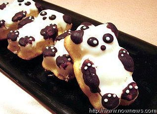 業(yè)者說從九月起就開始研發(fā)這一款“熊貓蛋糕”,以因應(yīng)即將來臨的“熊貓熱”。業(yè)者說,可愛的熊貓造型,黑跟白的部分都是用瑞士來的巧克力,吃起來甜卻不膩,加上上面所黏的椰絲,越咀嚼越香,非常好吃。而且里頭還加了來自瑞士的糖漬柑橘丁,配上一些新鮮柳橙皮,增加果香。讓熊貓蛋糕咬下去口感豐富,一口接一口,細細咀嚼中還可以感受椰絲香氣。