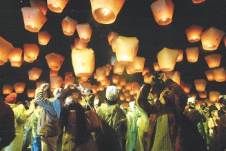 平溪國際天燈節(jié)今年除施放臺(tái)灣主燈,另有日本紙風(fēng)船天燈、墨西哥造型天燈,增添異國風(fēng)情。