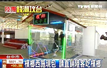 臺(tái)灣TVBS報(bào)道,在大陸安利公司游客即將到來(lái)的會(huì)場(chǎng)里,原本路邊隨處可見(jiàn)的檳榔攤被原封不動(dòng)搬進(jìn)會(huì)場(chǎng),18日當(dāng)天還會(huì)請(qǐng)來(lái)“正港”檳榔西施現(xiàn)場(chǎng)包檳榔給大陸游客品嘗品嘗,為的就是讓大陸人感受真實(shí)的臺(tái)灣生活。