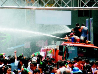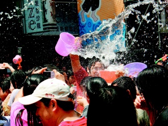 中新網(wǎng)4月13日電 臺(tái)灣臺(tái)北縣“中和市2009潑水節(jié)”昨天上午在南勢(shì)角捷運(yùn)站盛大登場(chǎng),民眾拿著水槍、水瓢、水桶到處噴灑開戰(zhàn),臺(tái)北縣消防局也調(diào)派兩輛消防水車加入戰(zhàn)局,超強(qiáng)水柱掃射現(xiàn)場(chǎng)民眾,讓民眾遇水則發(fā),氣氛夯到最高點(diǎn),樂(lè)到不行。