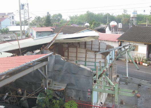 中新網(wǎng)4月21日電 據(jù)臺(tái)灣《聯(lián)合報(bào)》報(bào)道,臺(tái)南縣白河鎮(zhèn)大林里20日下午疑出現(xiàn)龍卷風(fēng),瞬間強(qiáng)大風(fēng)力,吹毀九戶民宅屋頂,婦人吳郭幼家的鐵皮屋頂整個(gè)被掀開(kāi),一百八十度翻轉(zhuǎn)后,再倒蓋在房子上,“全部過(guò)程不到一分鐘”,受災(zāi)民眾談起仍難掩驚嚇。