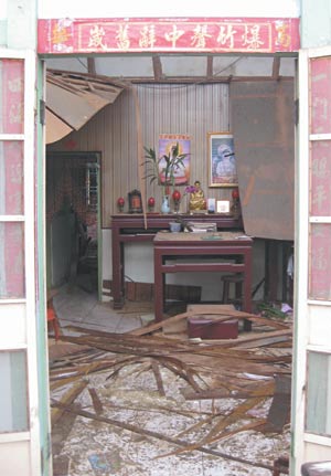 篤信佛教的她說(shuō),趕緊回屋,發(fā)現(xiàn)三十坪大的屋內(nèi)滿目瘡痍,電視、冰箱全倒,杯碗散落一地,亂成一團(tuán);“還好客廳供奉的佛祖神像沒(méi)有受損”,仍安穩(wěn)坐在供桌上!澳芴舆^(guò)一劫,真是神明有保佑!”