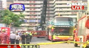 中新網(wǎng)4月24日電 據(jù)臺(tái)灣TVBS報(bào)道,臺(tái)灣信義商圈24日發(fā)生一起嚴(yán)重工安意外,一輛載有25人的廣東旅行團(tuán)游覽車(chē),經(jīng)過(guò)工地時(shí)被37層樓高的起重機(jī)吊臂砸到,導(dǎo)致3人輕重傷和3人死亡。臺(tái)北市長(zhǎng)郝龍斌到意外現(xiàn)場(chǎng)勘災(zāi),對(duì)旅行團(tuán)員表示關(guān)心。