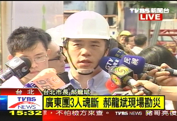 郝龍斌表示旅行團(tuán)來(lái)自廣東東莞,初步分析應(yīng)該是工安疏失,并承諾會(huì)嚴(yán)格查辦懲處。而造成意外的工地也已經(jīng)停工,處理善后。