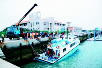 吉貝安檢所副所長(zhǎng)高敬育說(shuō),因?yàn)槌辈畹年P(guān)系,船靠岸時(shí),距碼頭高度仍達(dá)兩米,安檢人員必須用拉或抱的,才能將乘客拉上岸。