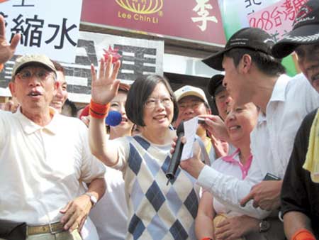 8月30日,蔡英文帶領(lǐng)綠營民眾上街游行,表達(dá)對馬英九當(dāng)局的不滿。